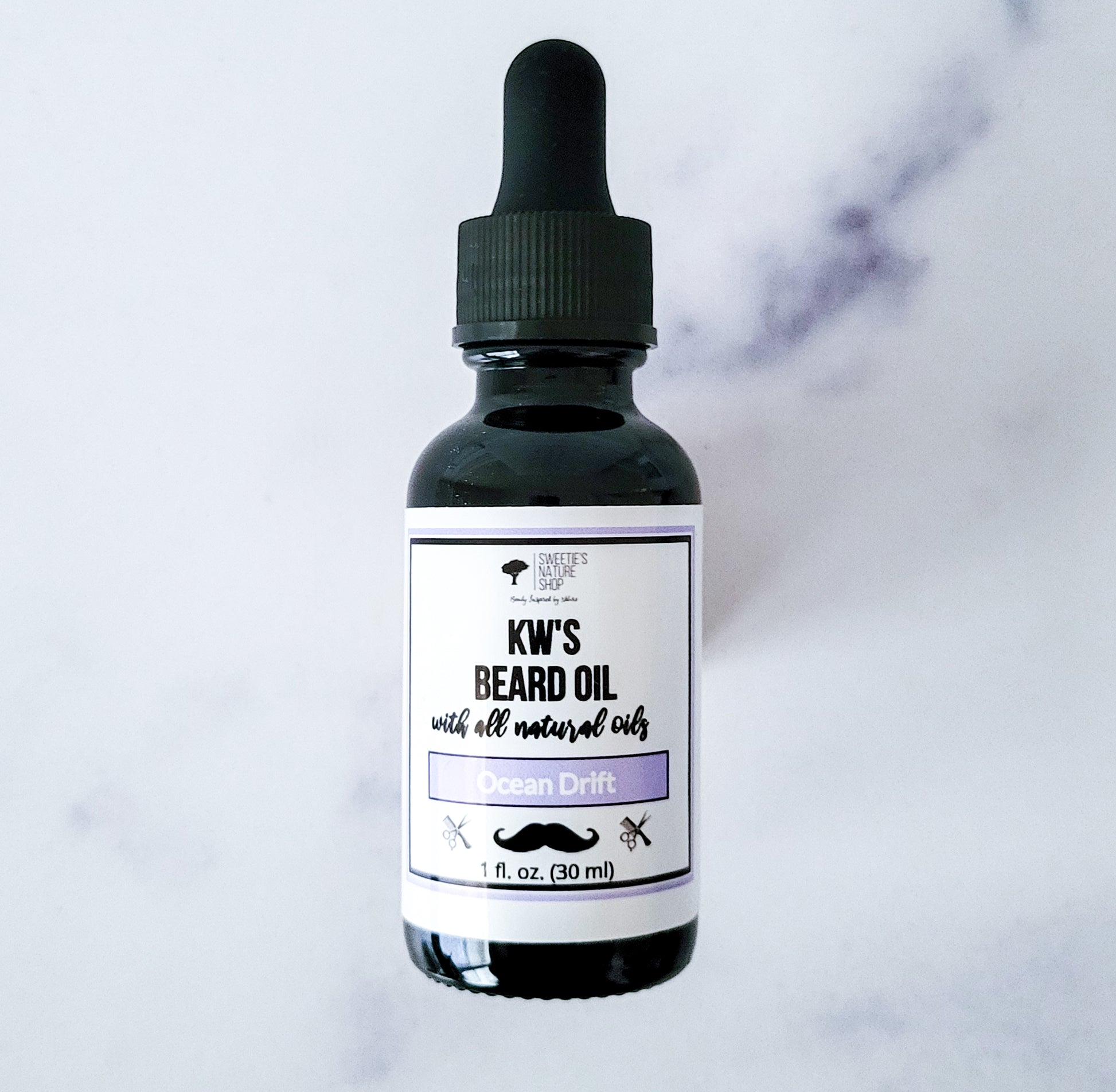 KW's Beard Oil consists of natural oils that are blended together to soften and condition your beard and mustache. Quick-absorbing Safflower Seed Oil helps reduce the itch. Argan Oil, which is high in Vitamin E, helps give your beard a healthy shimmer and keeps it soft. It's also good for your skin. Jojoba Oil has natural antibacterial and antifungal properties and it provides moisture to your dry beard strands. Vitamin E repairs dry skin and hydrates your face.